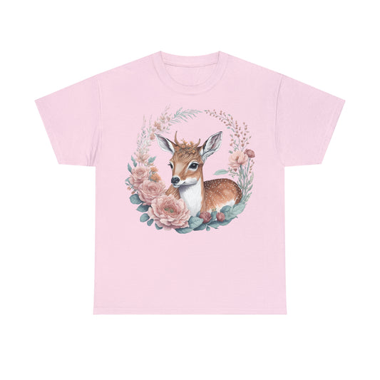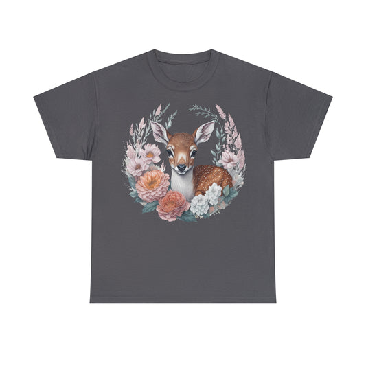 Unisex T-Shirt Rehkitz und Blumen