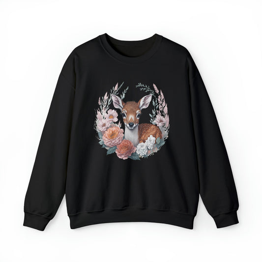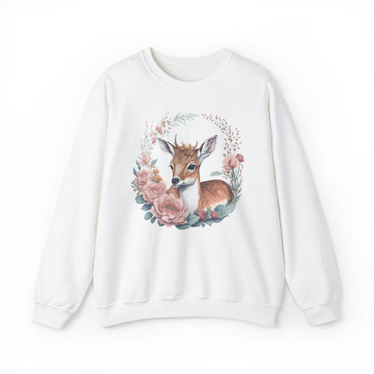 Unisex Sweatshirt Rehkitz und Blumen