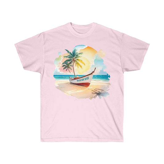 Unisex T-Shirt Boot am Strand