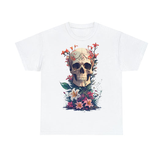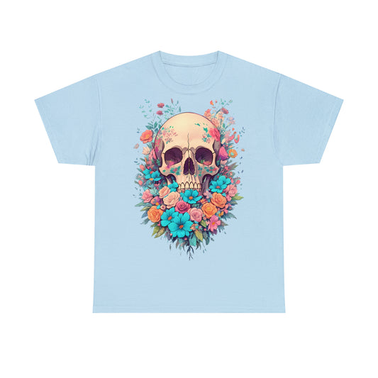 Unisex T-Shirt Totenkopf mit Blumen